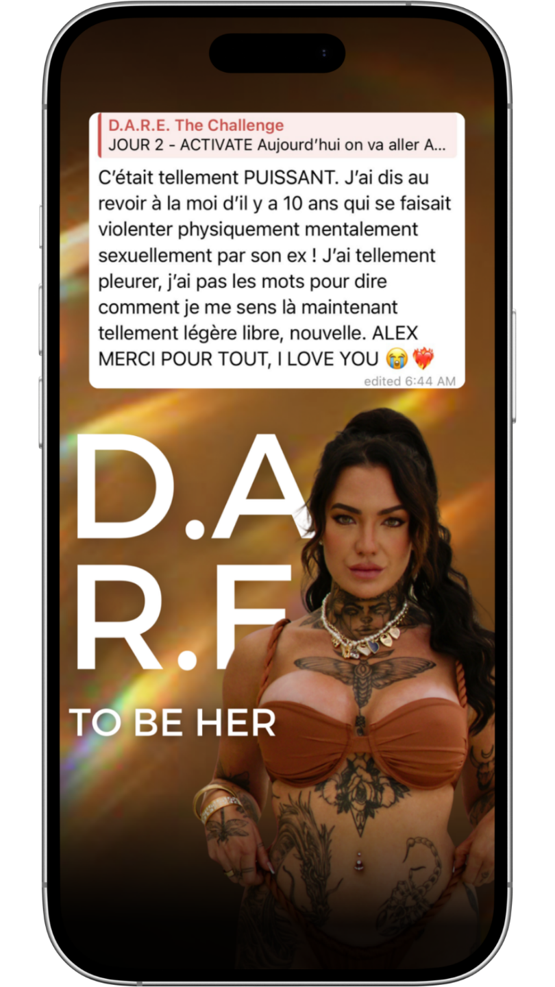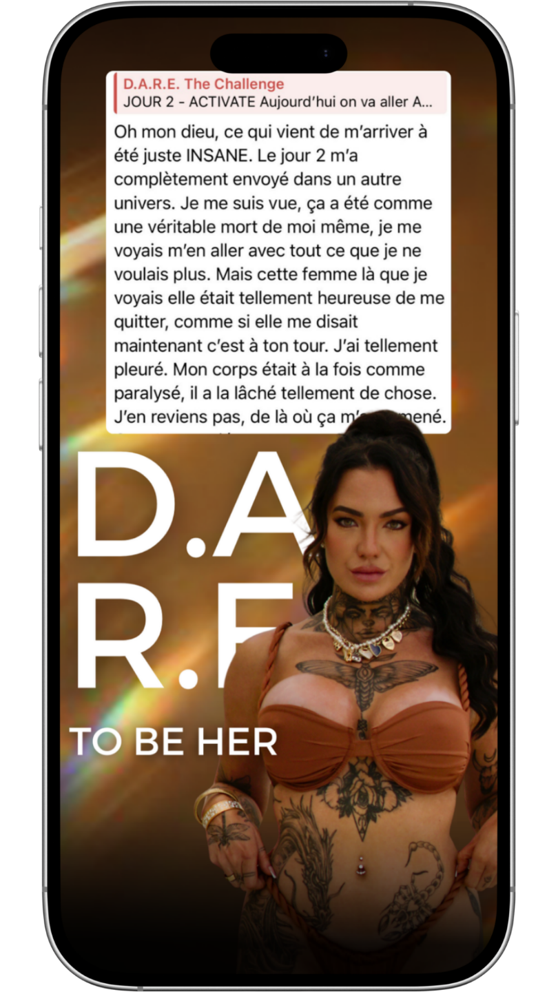 Chaque D.A.R.E. t'amène à bouger, ressentir et devenir une nouvelle version de toi. Tu ne penses plus à ta transformation : tu la vis.