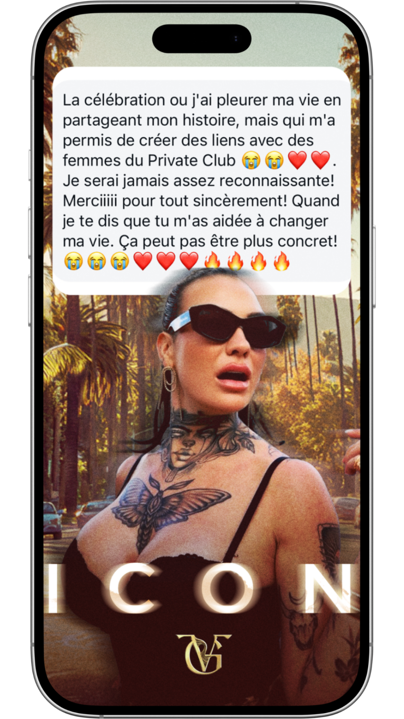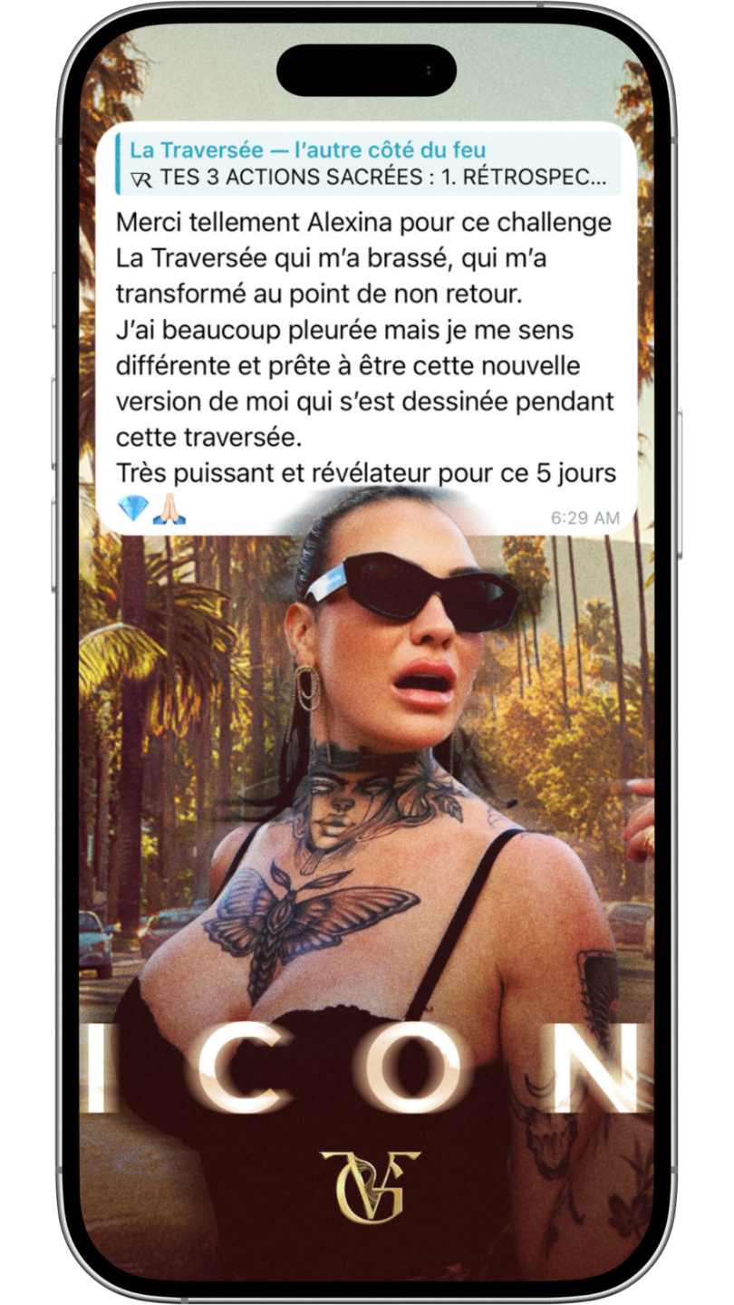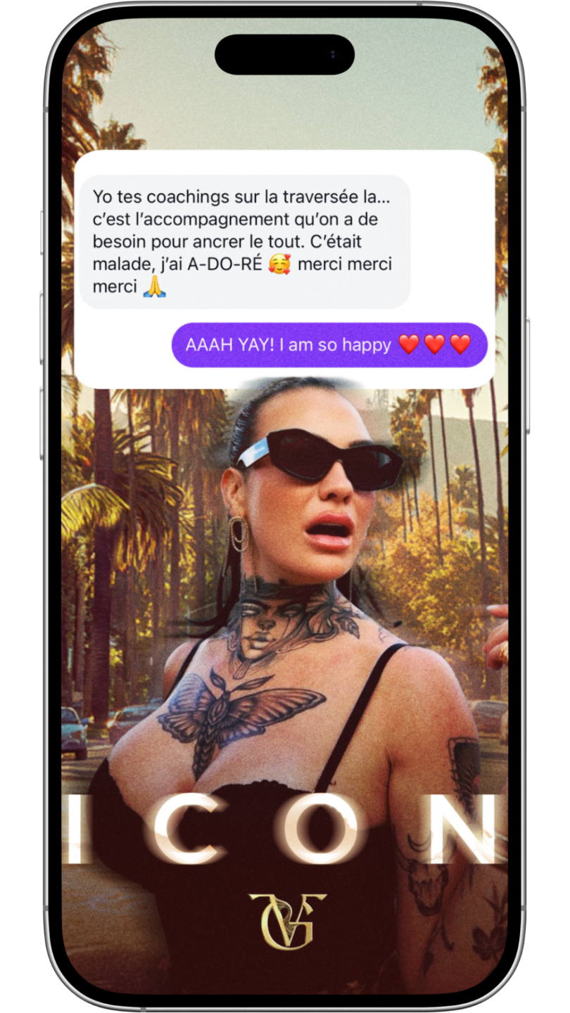 ICON c’est où tu reprends les rênes de ta vie, où les femmes qui changent les règles viennent jouer, où tu agis comme le main character de ta réalité et où, du moment que tu incarnes ça, ta réalité 3D commence à se plier à ce que tu décides, assumes, incarnes.